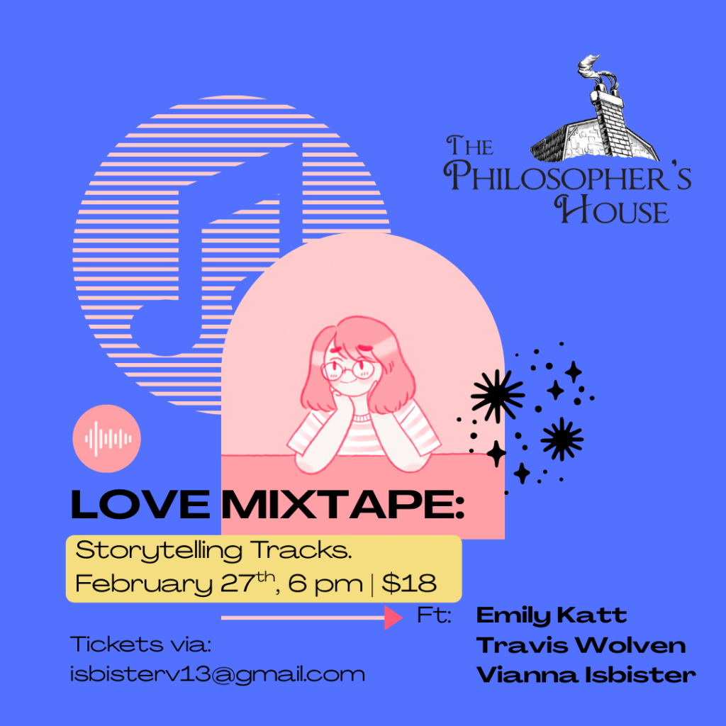 Second Fridays of each month from 6:00-7:30PM, with open mic sign-ups starting at 5:45PM. Spots are limited to 4 minutes per poet.